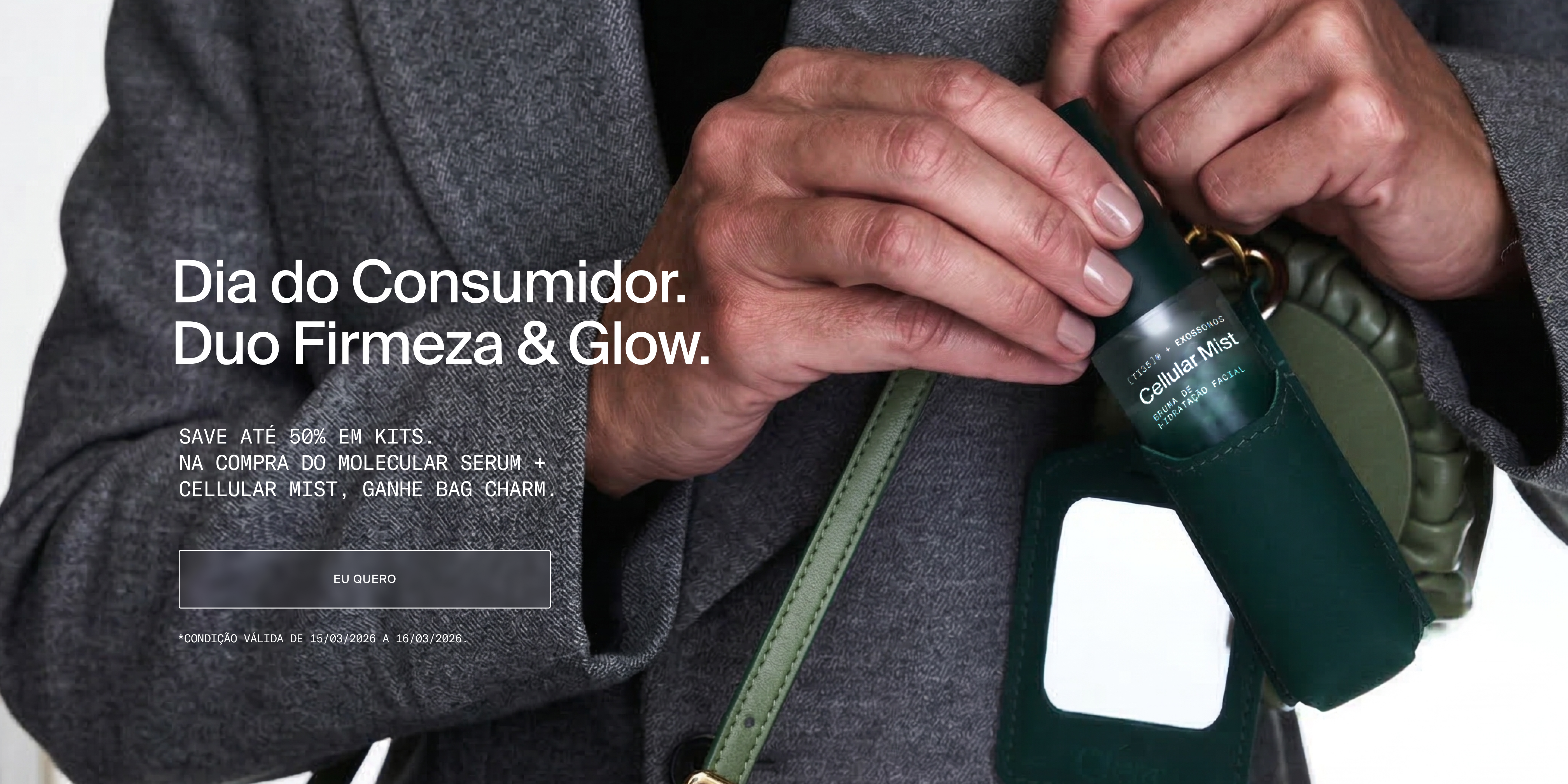O Molecular Serum atua na elasticidade e textura, enquanto o Cellular Mist reforça a hidratação e a proteção da barreira cutânea ao longo do dia.