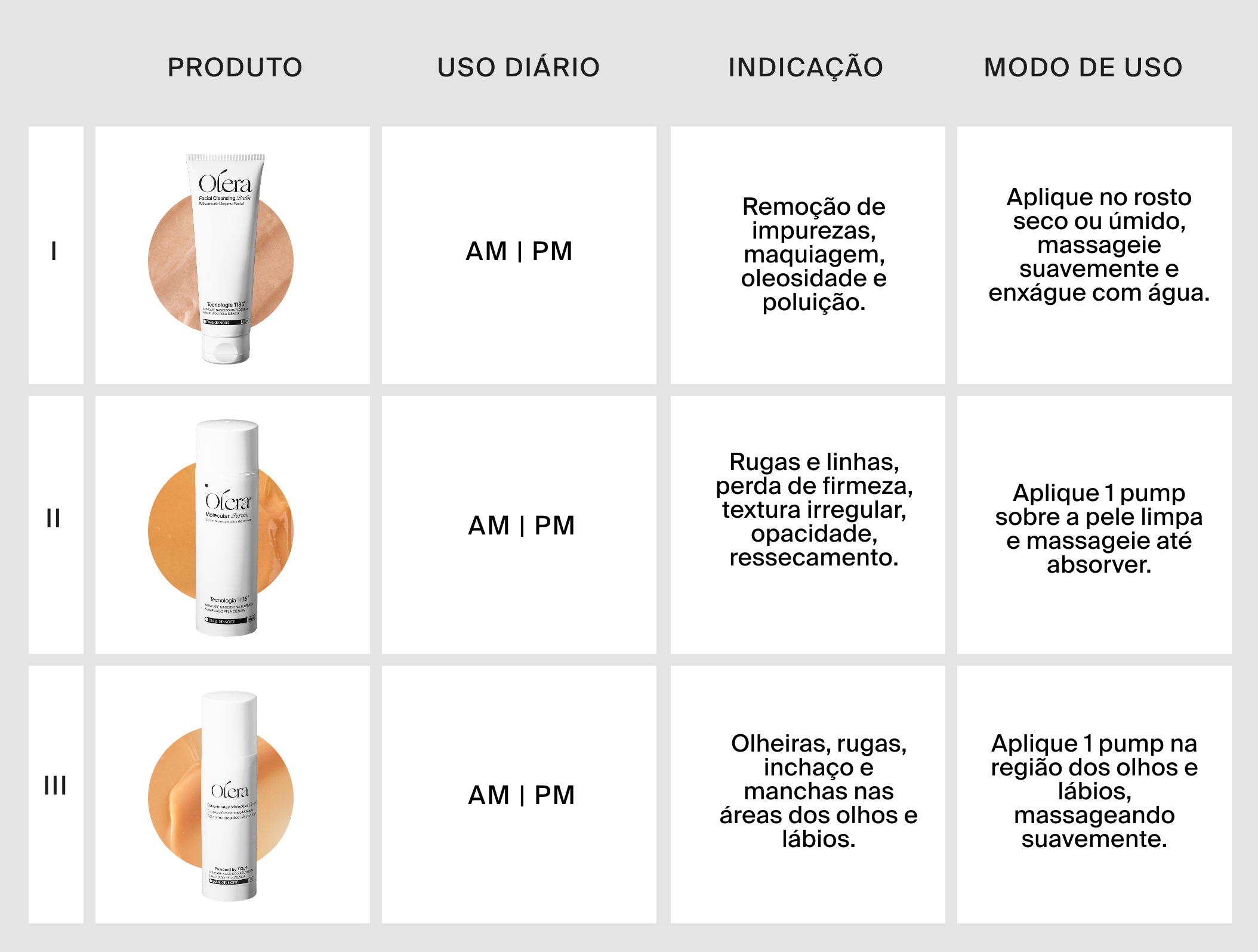 A Olera é uma marca brasileira de biotecnologia aplicada ao skincare. Nossas fórmulas contam com o complexo patenteado TI35®, exclusivo da marca, que concentra bioativos do açaí para regenerar, proteger e prolongar a vitalidade da pele. Unimos ciência de ponta, performance comprovada e texturas sofisticadas.